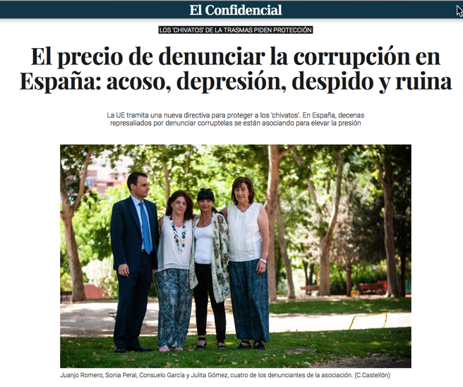 Elconfidencial.com en este extenso artículo pone de relieve lo que verdaderamente ocurre en España cuando se denuncia corrupción. Lo hace, de la mano de los testimonios de algunos de los numerosos ciudadanos que han sufrido las consecuencias de haberlo hecho: