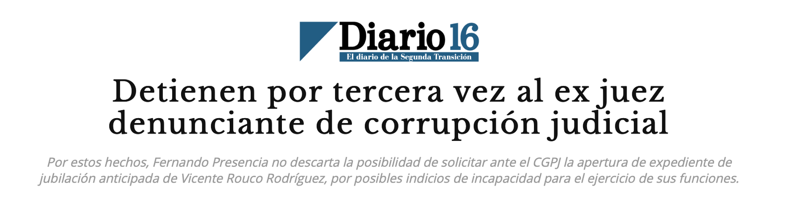 (3) Presunta intervención de Vicente Rouco, años después, en un caso similar al de Fernando Presencia, pero en el que se llegó incluso a internar ilegalmente en un hospital psiquiátrico a un ciudadano durante una semana, «bajo un diagnóstico aparentemente falso emitido por un médico forense no identificado» y del que «ningún juzgado se ha responsabilizado» porque, al parecer, el procedimiento fue declarado «secreto con instrucción de no notificar al interesado ni una sola resolución«.