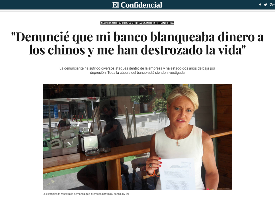 En el caso de Mar, tal y como relata el artículo, la Fiscalía Anticorrupción ha intervenido y los directivos de la empresa que actuaron contra ella están siendo todos investigados. Ojalá pudiera ser así con todos aquellos que denuncian situaciones o personas corruptas.