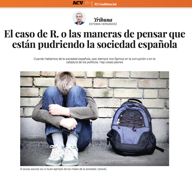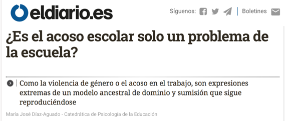 En este sentido, es muy clarificador este artículo que se acompaña, escrito por la Catedrática de Psicología de la Educación, Doña Maria José Díaz-Aguado. En él profundiza en las raíces y consecuencias del acoso a niños en edad escolar.